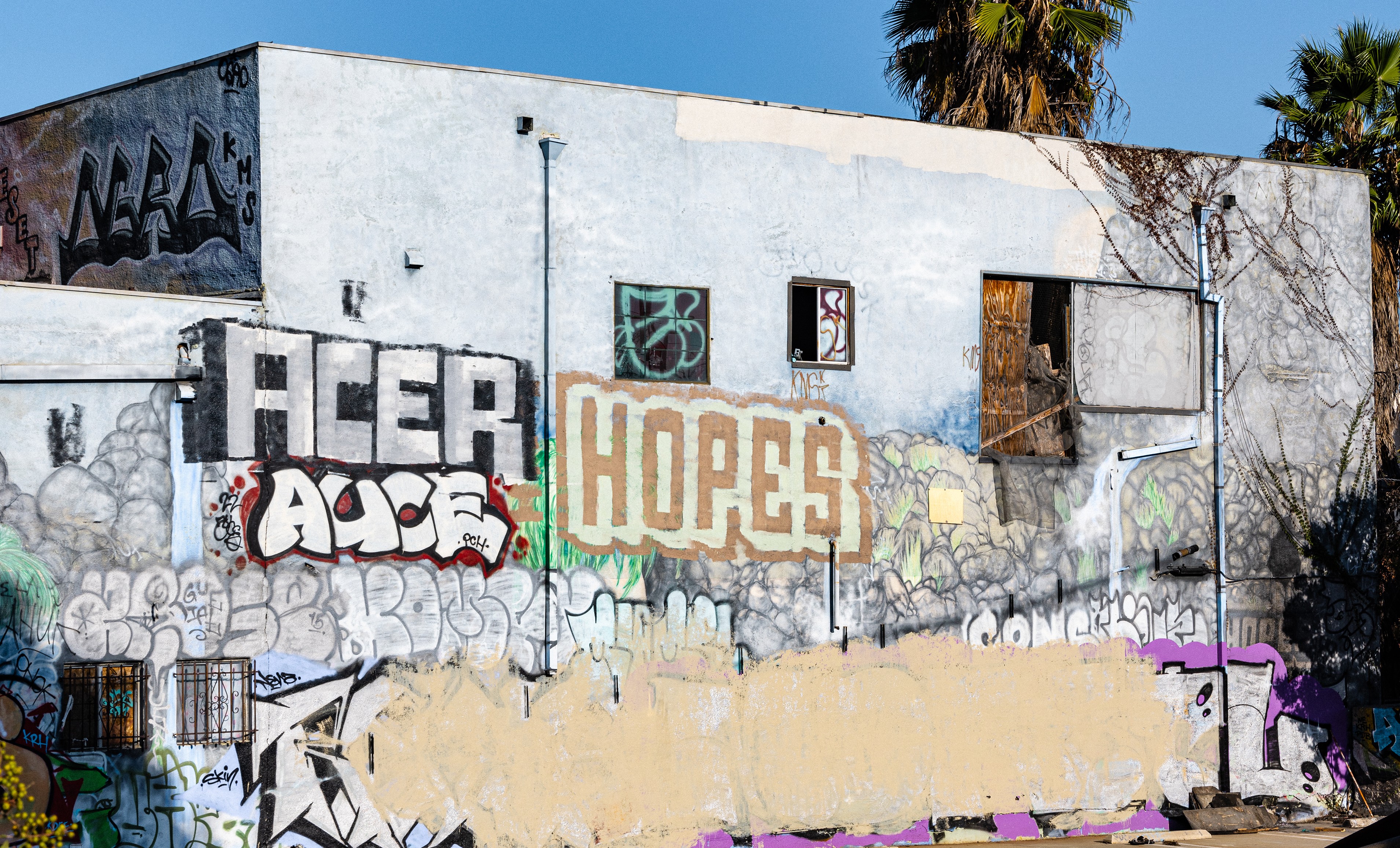 The artist has also been a part of quite a few stirs in the media. Notably, in late 2023 a few Downtown LA high rise apartments were taken over by various graffiti artists. The stunt made it to major news outlets around the globe. The art made headlines throughout social media outlets and modern art publications, and for the mainstream media it pointed out these massive luxury apartments have been under construction for a number of years with a severe lack of tenants. Most likely because of the unaffordable price tags on them considering the parts of the city that they are located in. Soon after, in early 2024, a number of abandoned mansions in the Hollywood hills were blasted with graffiti tags and art. Again bringing attention to the real estate and housing crisis’ amidst numerous vacant buildings throughout the area. “HOPE” was found standing out among the various tags in both of these occurrences. Hopefully “Hope” continues to spread and inspire us all in its many forms.